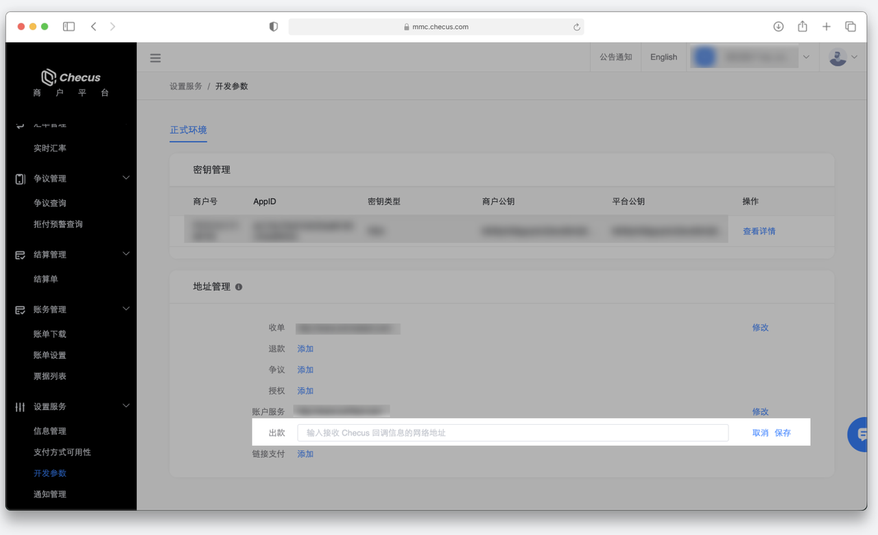 | 付款结果通知 | Checus→商户 | /disbursementResultNotifyUrl |