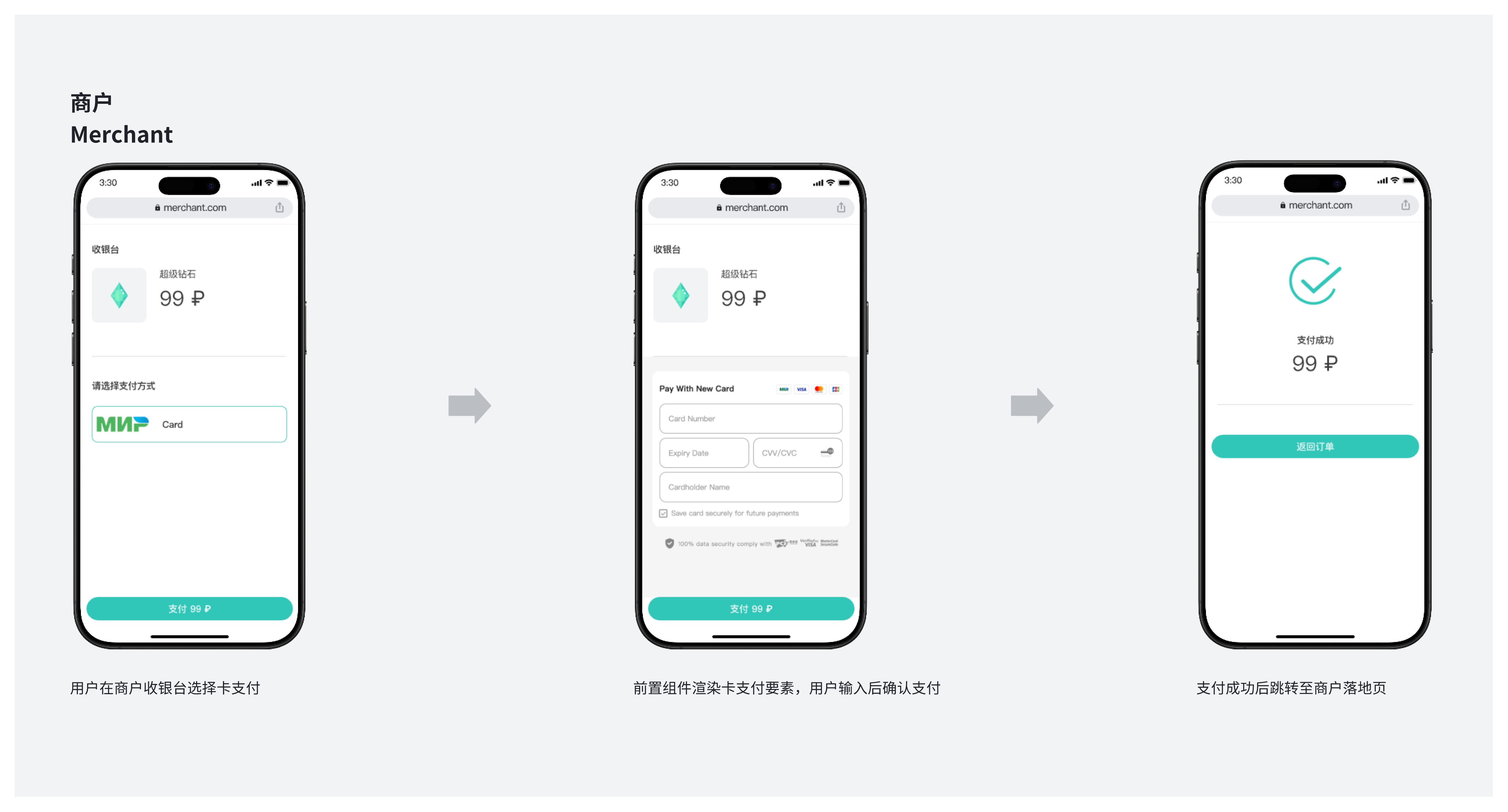 - 免 PCI 合规风险:卡号、CVV 等敏感数据由组件托管,商户无需接触;
