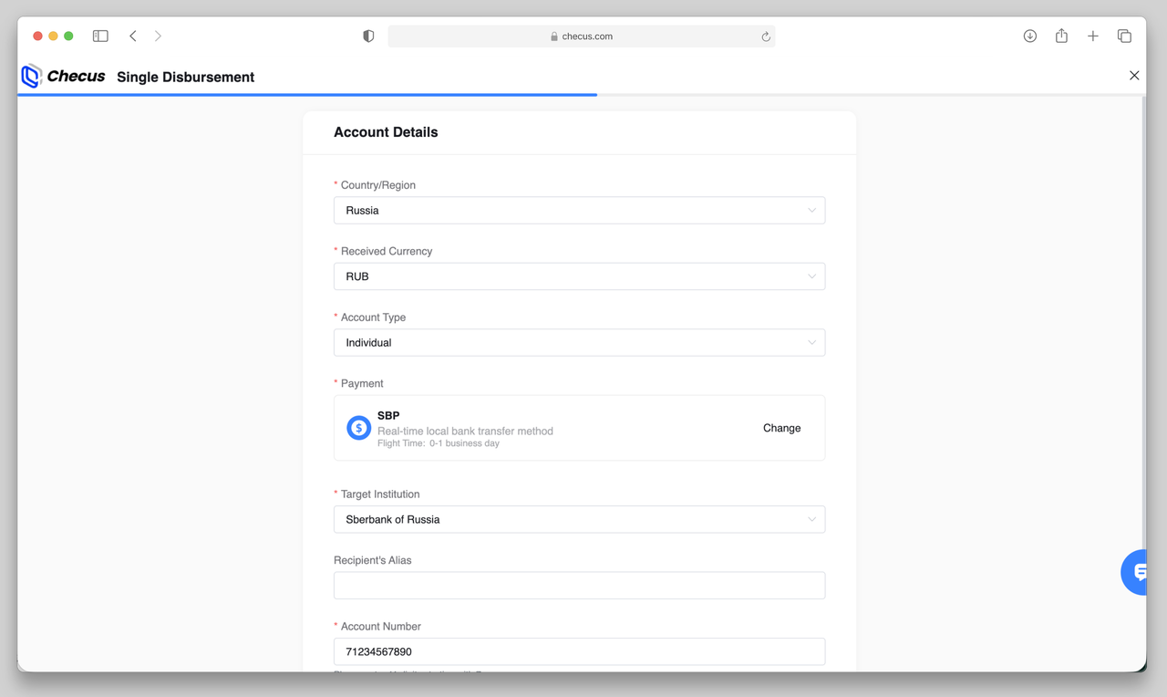 You can create frequently used beneficiary accounts to avoid re-entering information for the same recipient in future payouts. When creating an account, the beneficiary information must be filled in according to Country + Payment Method + Settlement Currency.