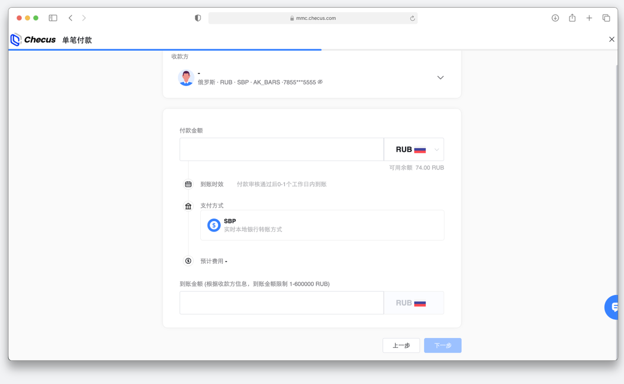Step 2. Fill in the required account details and save. The beneficiary will then be available for this payment. For detailed instructions, please refer to Beneficiary Account Management.