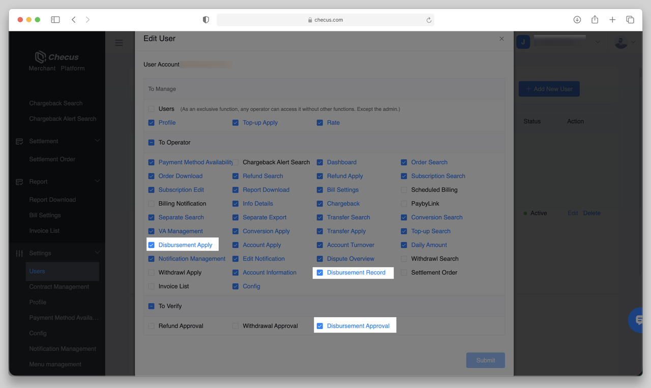 - Once an administrator grants Payout Approval permission, operators can review and approve payout requests submitted by themselves or others under the same merchant account.