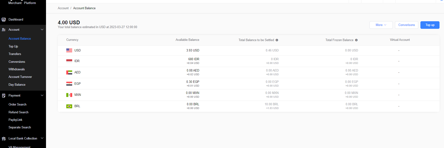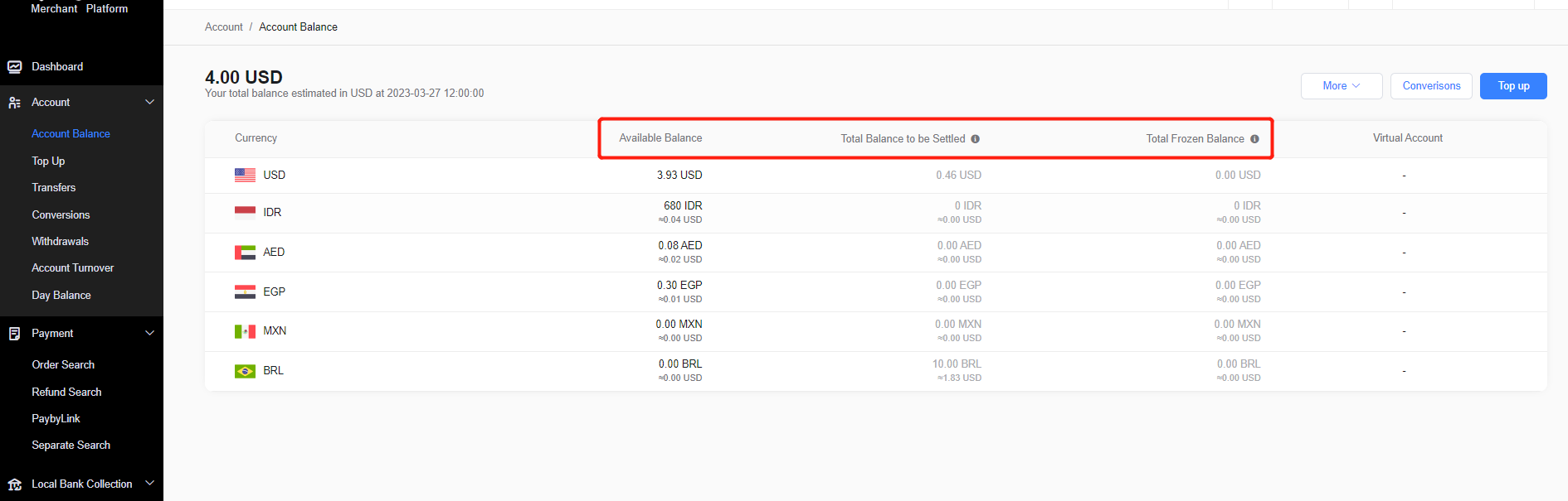You can enter the Checus merchant platform "Account Management" - "Account Balance" menu to view the current account balance. All account amounts are converted to USD for display according to Checus exchange rates.