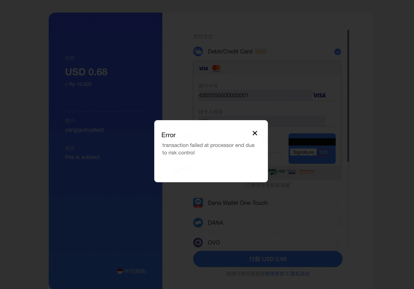 Finally, the cashier page style when interception occurs due to blacklist is shown below: