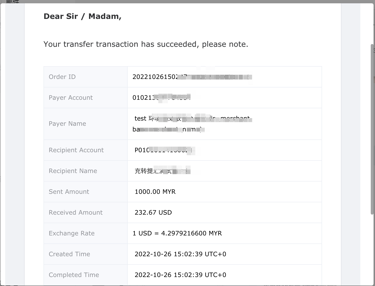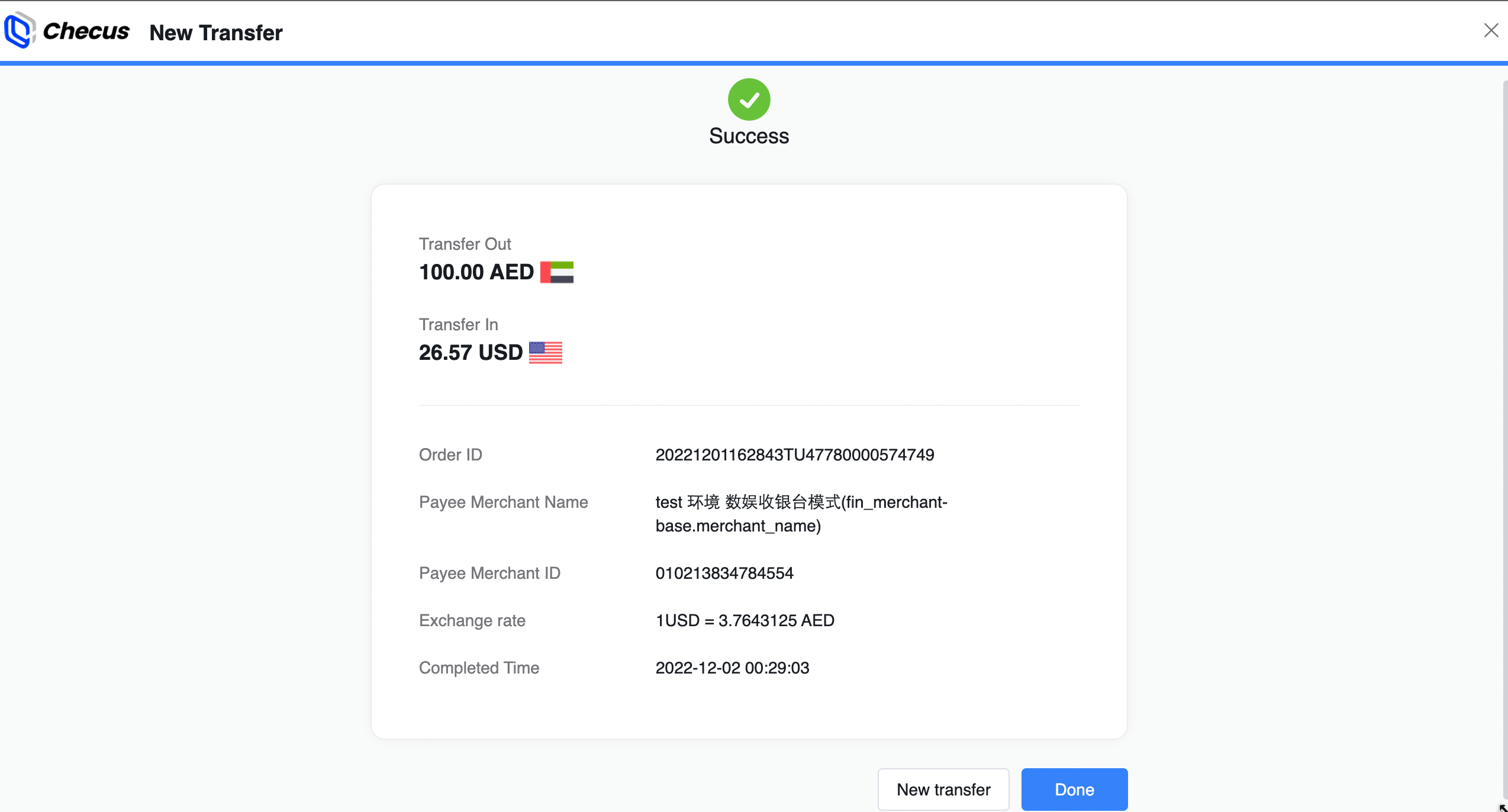 Failure: The transfer failed. You can view the failure reason on the page or contact Checus staff for confirmation.