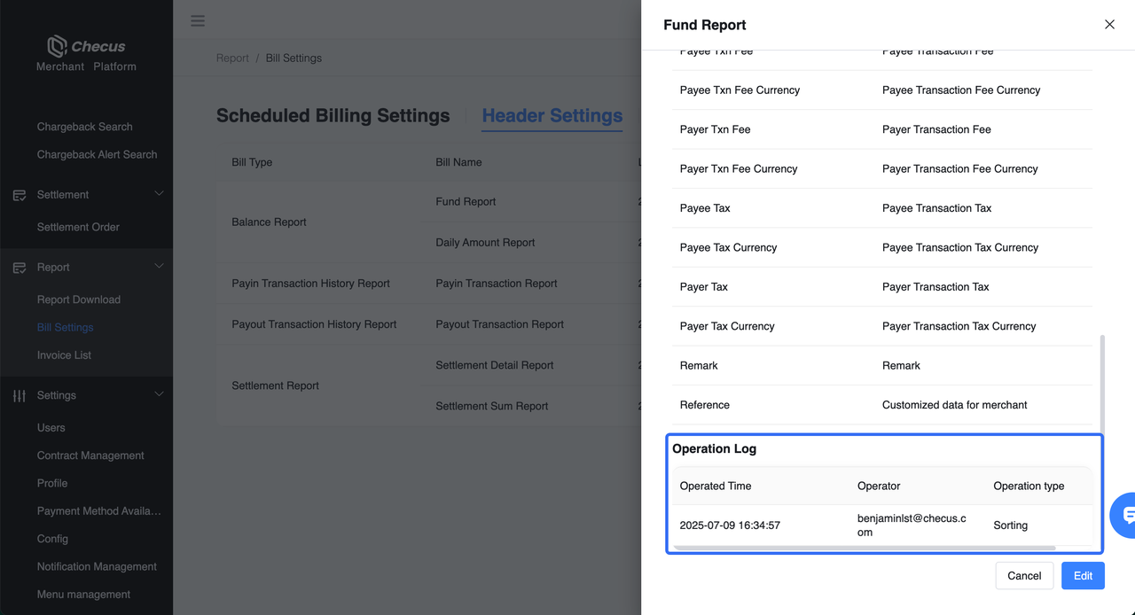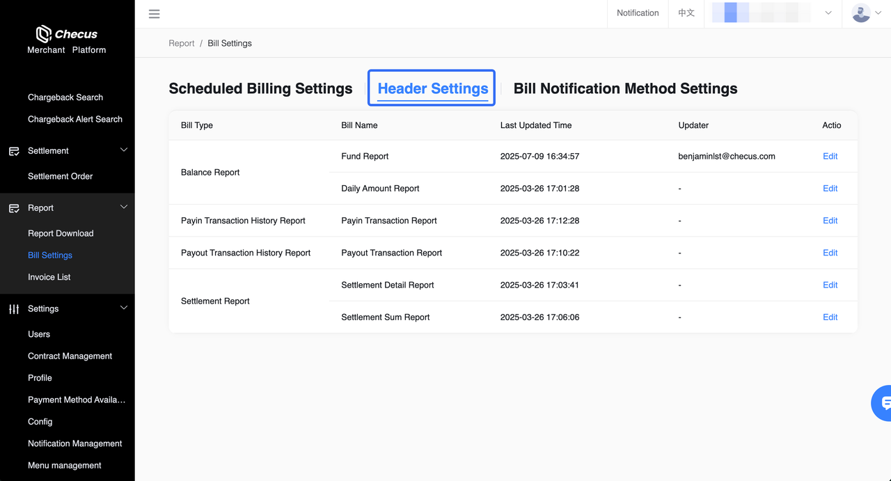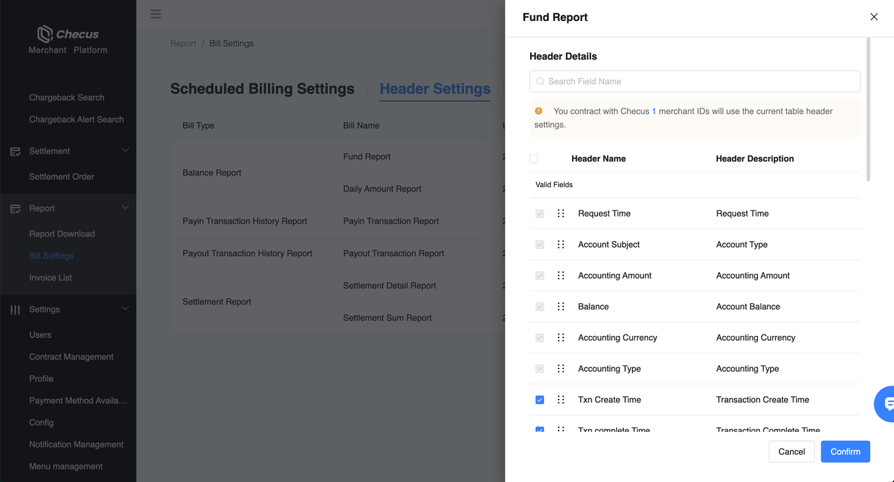 Support customizable statement headers, automatic notifications after generation, and scheduled generation. Applicable to various reports such as transaction details, fund details, and settlement summaries. After configuring in the merchant console (MMC), you can download on demand or receive via email or SFTP.